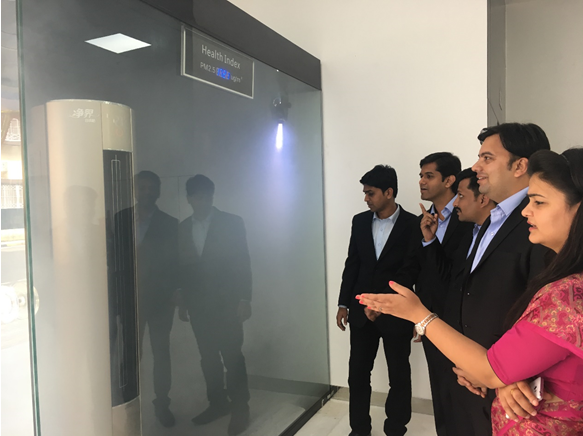 从今天的现场展示来看,海尔空调展示了智能高端健康产品,例如云鼎空调、帝樽空调,以及能吞掉“一束光“的新品——海尔净界自清洁空调等,均在印度当地亮相。据工作人员介绍,海尔空调在印度市场上的变频空调将全部用上自清洁。同时针对印度特殊需求,还推广了智慧眼变频技术和稳压变频技术,解决当地用户用空调电压不稳、能耗高等痛点。